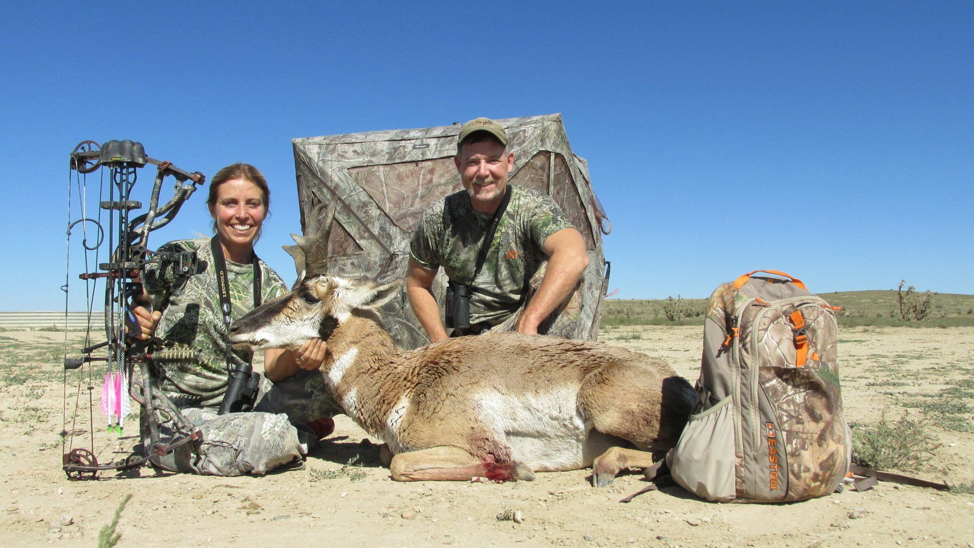 Despite our wet season out of 20 clients we were 10 out of 20 on kills (50%) and 15 out of 20 on shots (75%). Although not included on our client stats Fred harvested the only doe of the season with his recurve, Michele shot a beautiful buck two days before the season ended and our office manager Abby also shot a great antelope (her first animal with a bow ever!)